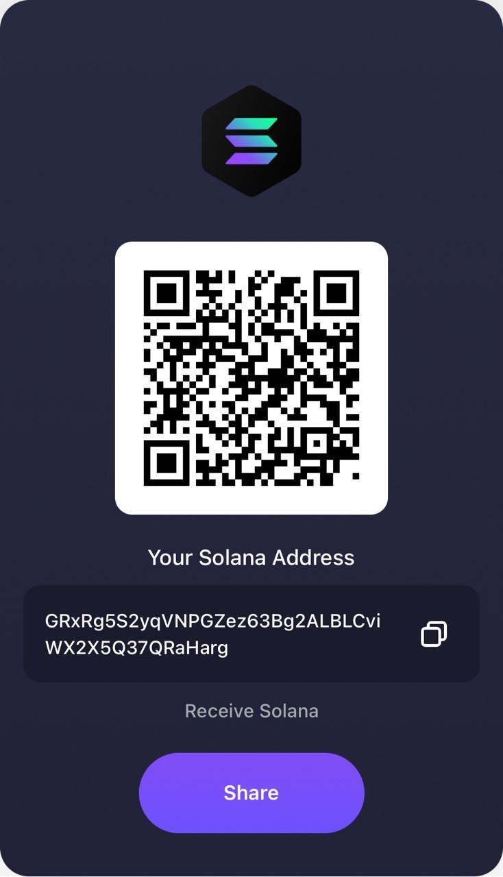 Solana (SOL) Address: GRxRg5S2yqVNPGZez63Bg2ALBLCviWX2X5Q37QRaHarg